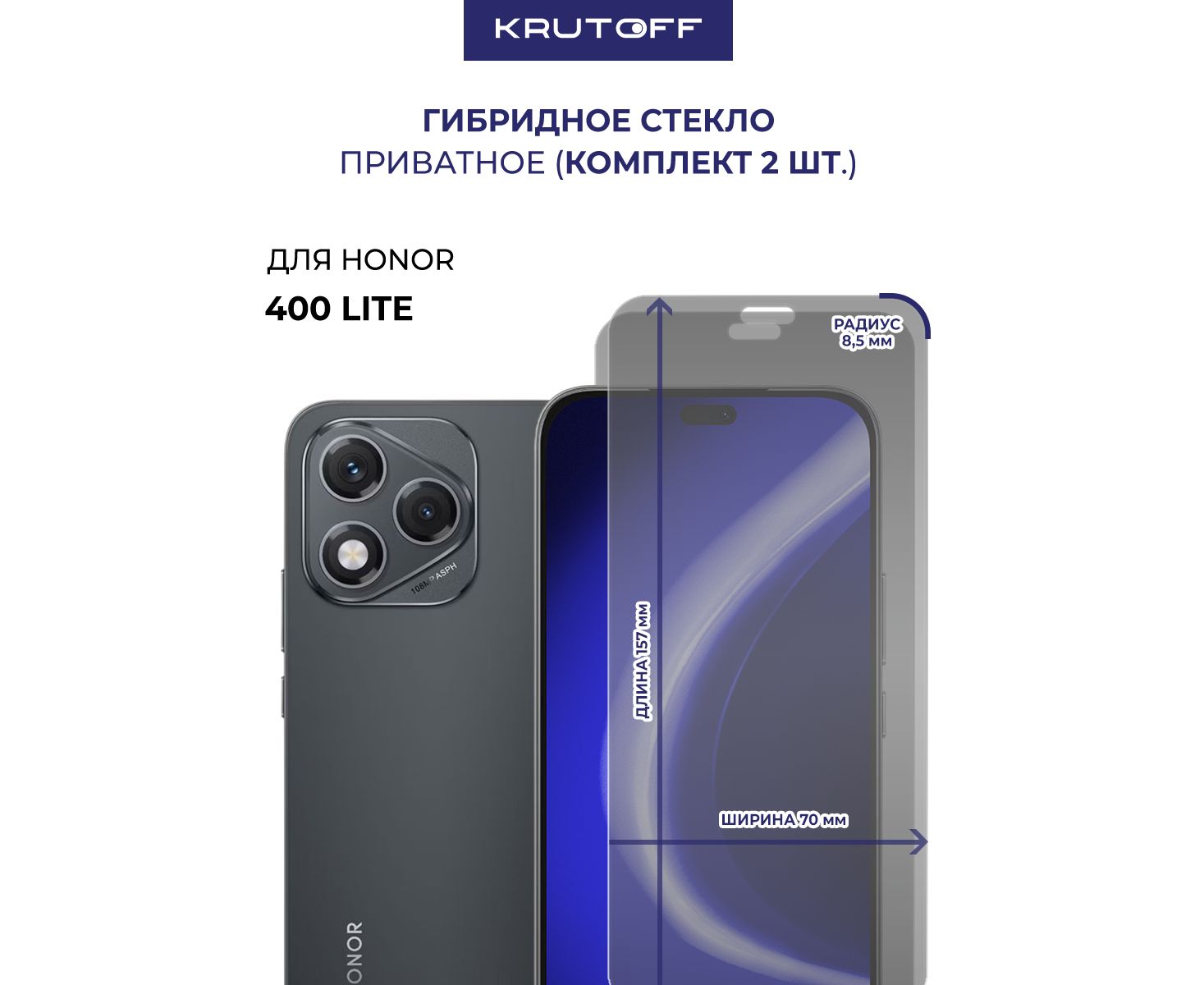 Комплект из 2-х защитных гибридных стекол Антишпион Krutoff для Honor 400 Lite