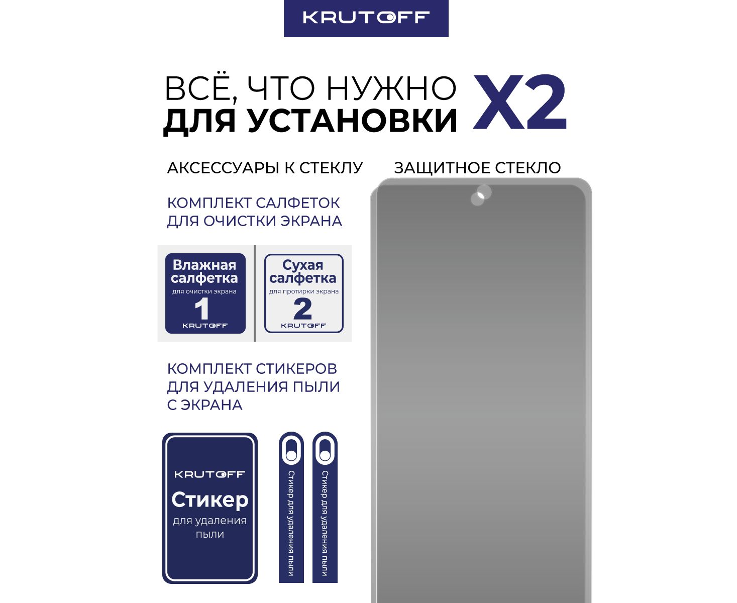 Комплект из 2-х защитных гибридных стекол Антишпион Krutoff для Honor X8d