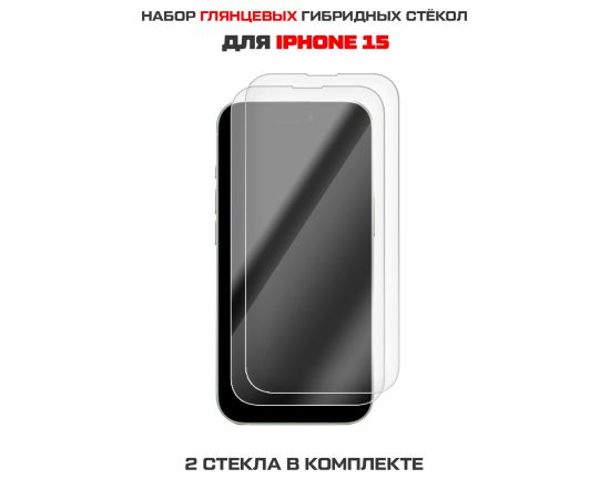 Комплект из 2-х защитных гибридных стекол Krutoff для iPhone 15