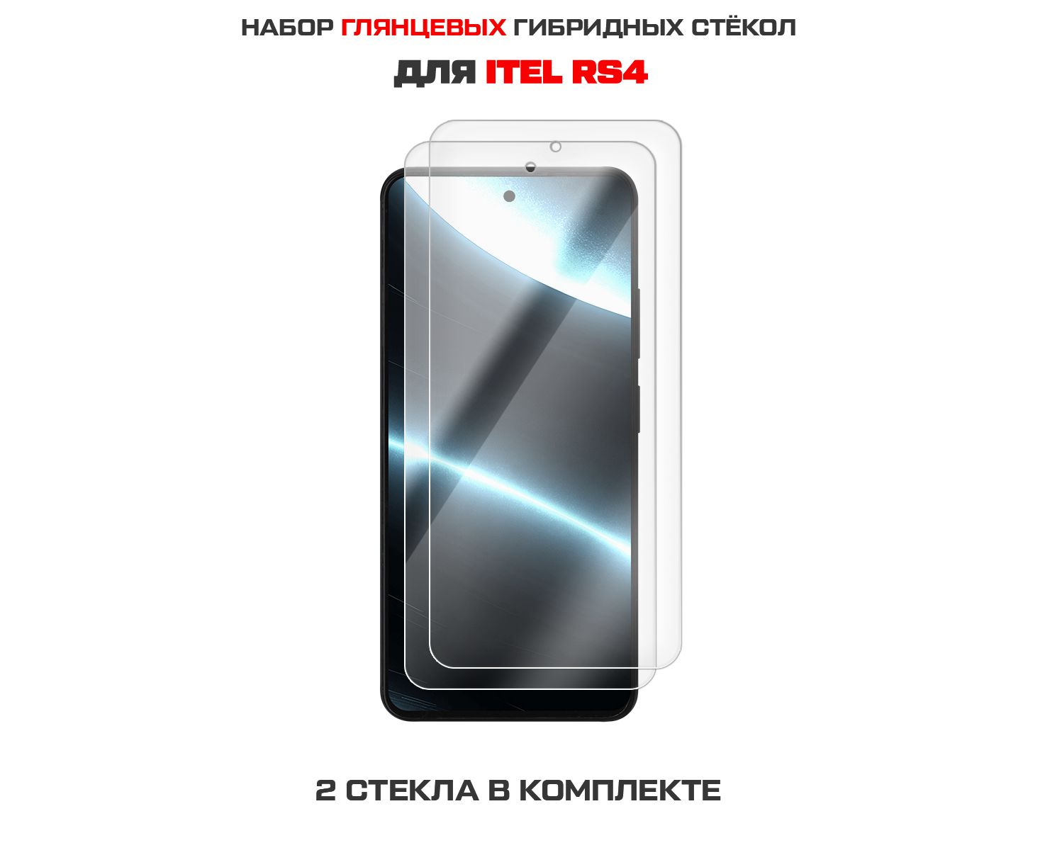 Комплект из 2-х защитных гибридных стекол Krutoff для ITEL RS4