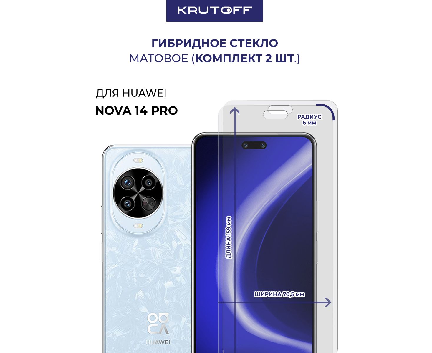 Комплект из 2-х защитных гибридных стекол МАТОВЫХ Krutoff для Huawei Nova 14 Pro