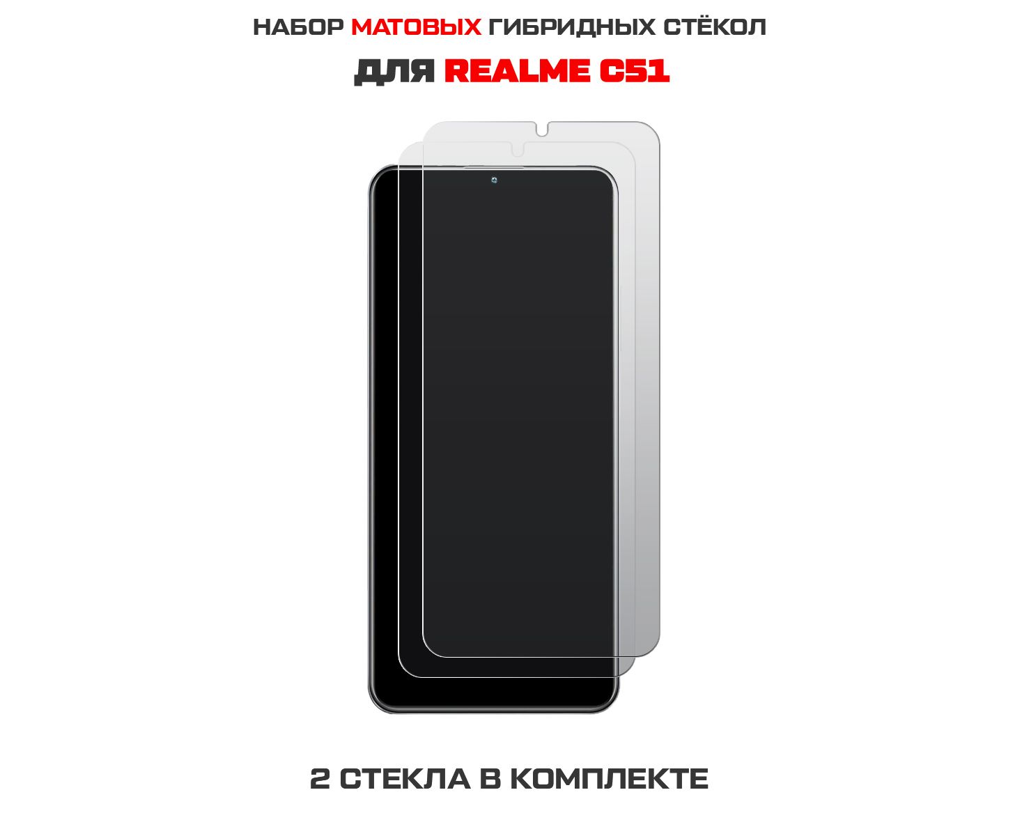 Комплект из 2-х защитных гибридных стекол МАТОВЫХ Krutoff для Realme C51