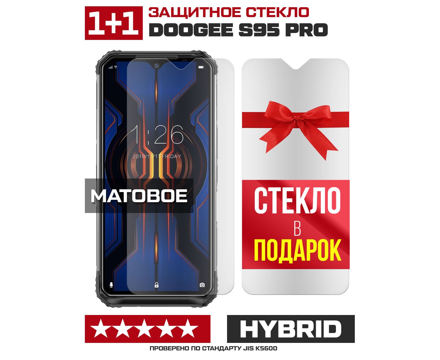 Комплект из 2-x защитных гибридных стекол МАТОВЫХ Krutoff для Doogee S95 Pro