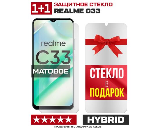 Комплект из 2-x защитных гибридных стекол МАТОВЫХ Krutoff для Realme C33