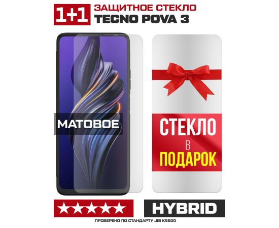 Комплект из 2-x защитных гибридных стекол МАТОВЫХ Krutoff для Tecno Pova 3