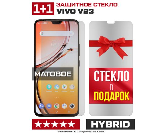 Комплект из 2-x защитных гибридных стекол МАТОВЫХ Krutoff для Vivo V23