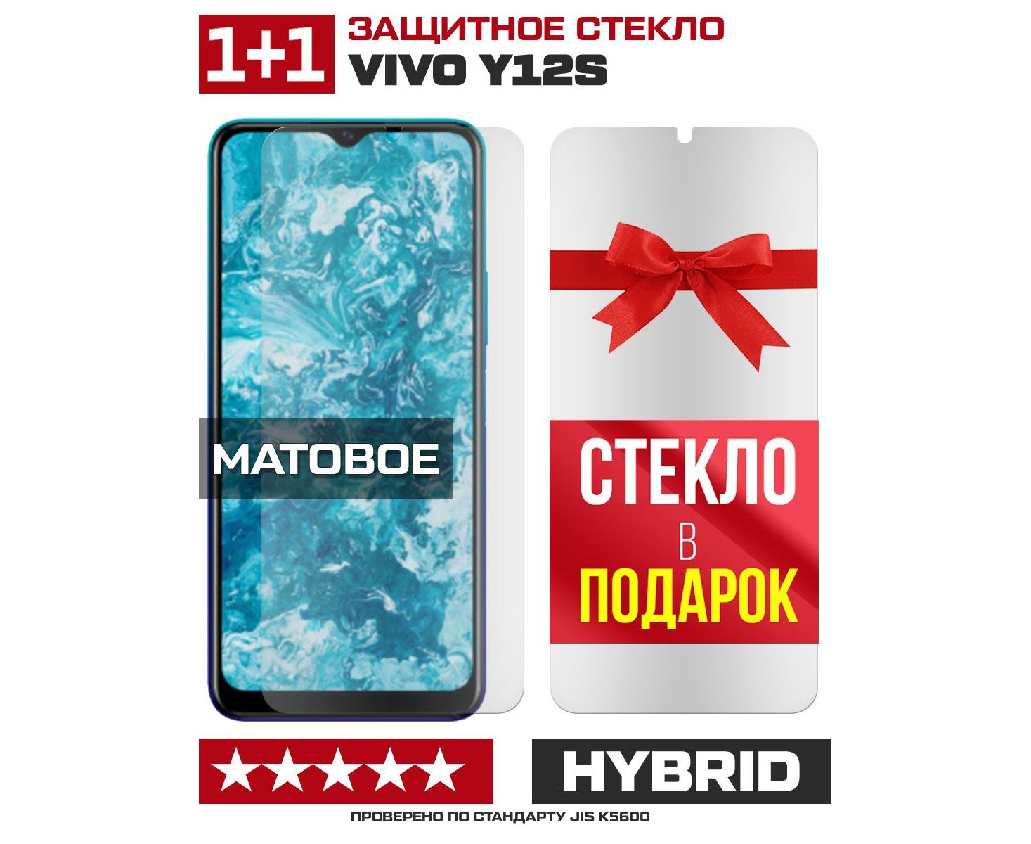Комплект из 2-x защитных гибридных стекол МАТОВЫХ Krutoff для Vivo Y12s
