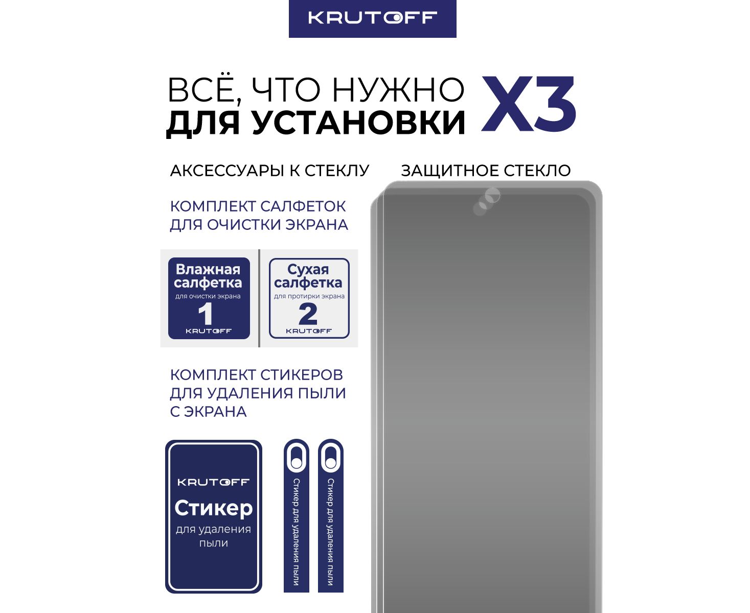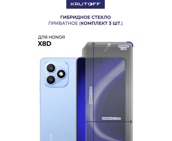 Комплект из 3-х защитных гибридных стекол Антишпион Krutoff для Honor X8d