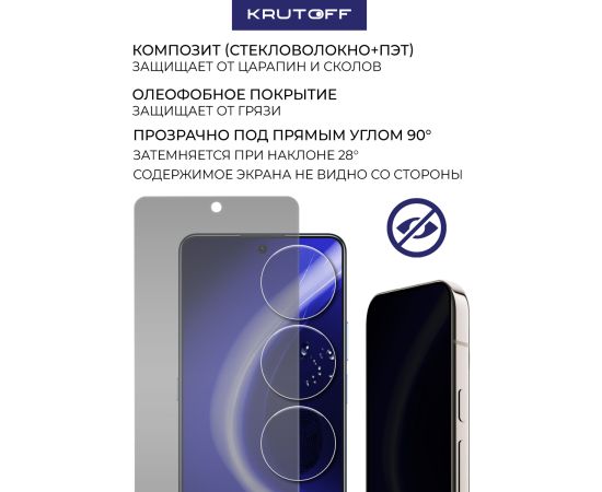 Сохранив гибкость защитной пленки, гибридное стекло намного удобнее обычного закаленного стекла - как при транспортировке, так и при установке. Оно тоньше, прочнее и надежно защищает экран от повреждений. Стекло антишпион не только защитит телефон от механических повреждений, но и скроет экран вашего смартфона от любопытных взглядов. Благодаря специальному свойству, изображение на экране видно только под прямым углом. Со стороны экран будет выглядеть как при выключенном дисплее. Стекло имеет отступы по 1 мм от края дисплея для удобства ношения защитного чехла. Имеет высокую степень устойчивости к царапинам, обеспечивает хорошую чувствительность к касанию и не влияет на сенсорный отклик по всей поверхности дисплея. Гибридное стекло идеально прозрачное, не снижает четкость и яркость изображения, не меняет оригинальную цветопередачу экрана. Изготовлено из гибкого композиционного материала (стекловолокно и ПЭТ). Является гибким и не растрескивается, а края не крошатся, как у обычного закаленного стекла. Защищает от пыли, грязи, брызг и царапин. Верхний слой из стекловолокна по тактильным ощущениям близок к стеклу и не влияет на работу сенсора по всей поверхности экрана. Полная проклейка поверхности (Full Glue). Специальная смесь высококачественных клеев гарантирует установку без пузырьков воздуха и что стекло не отслоится с течением времени. Внимание! Гибридное стекло поставляется в двух защитных транспортировочных пленках (на тыльной и лицевой стороне). Данные пленки могут быть поцарапаны. После наклеивания стекла снимите защитную синюю пленку "2" с лицевой стороны!