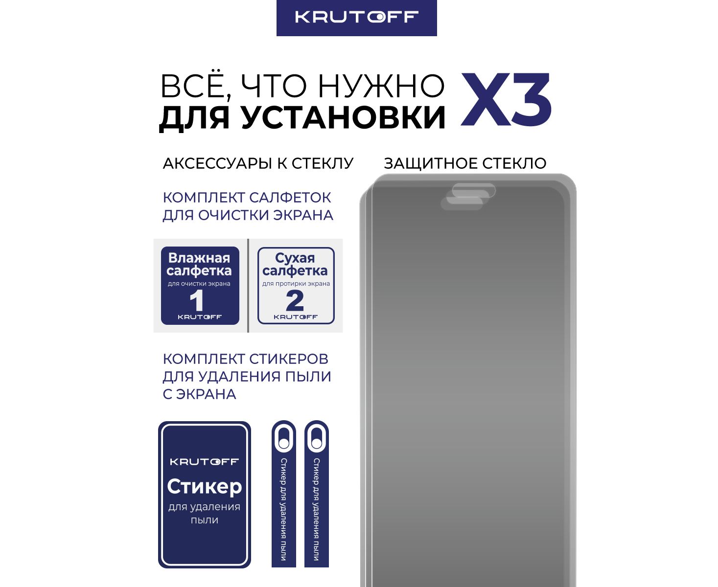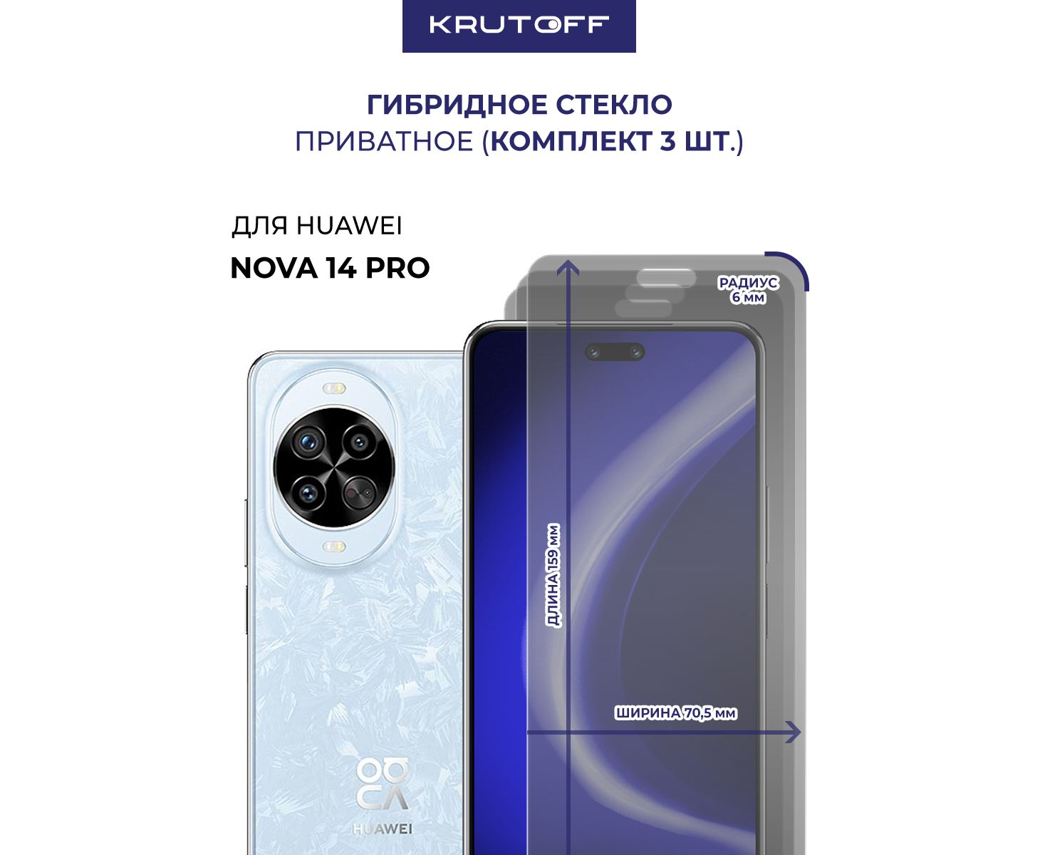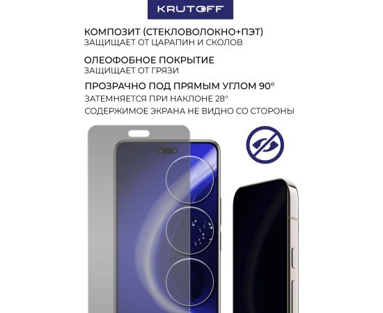 Комплект из 3-х защитных гибридных стекол Антишпион Krutoff для Huawei Nova 14 Pro