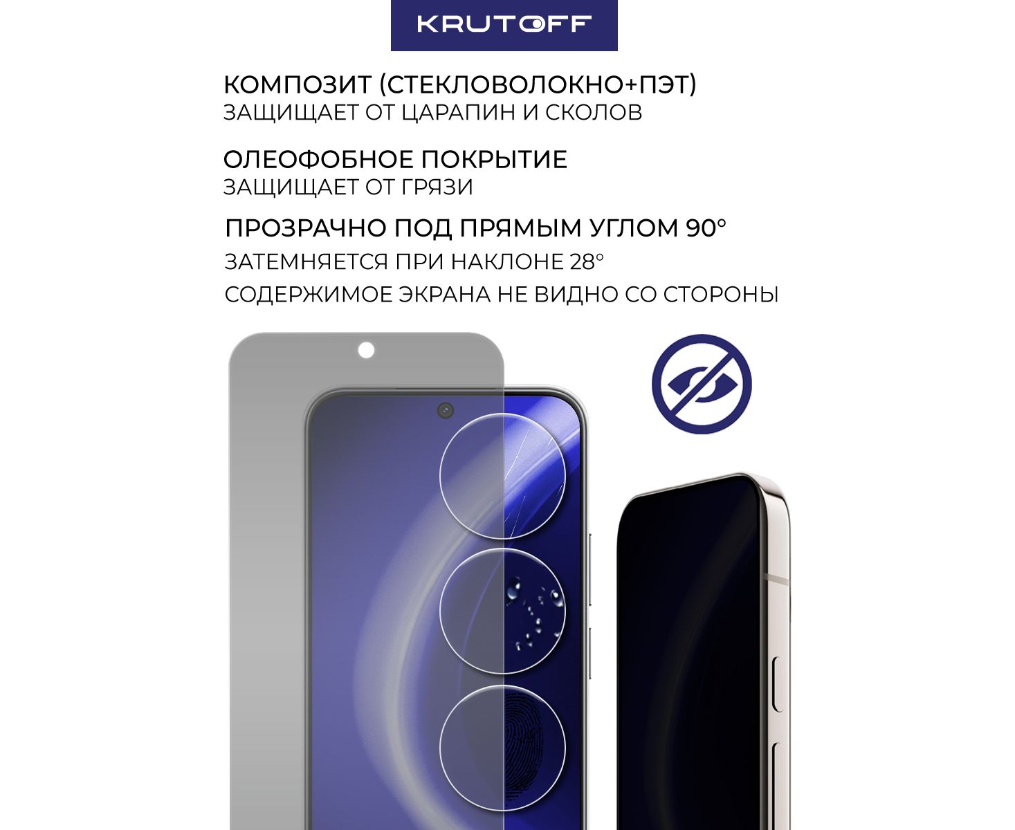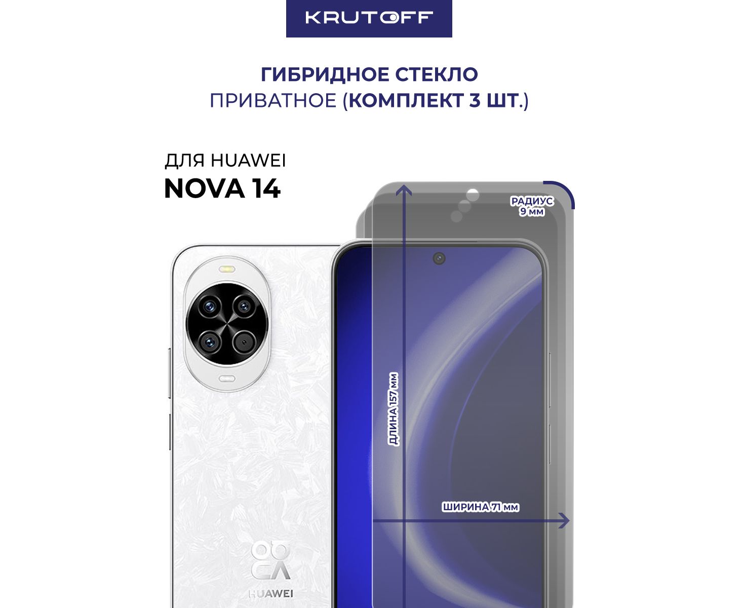 Комплект из 3-х защитных гибридных стекол Антишпион Krutoff для Huawei Nova 14