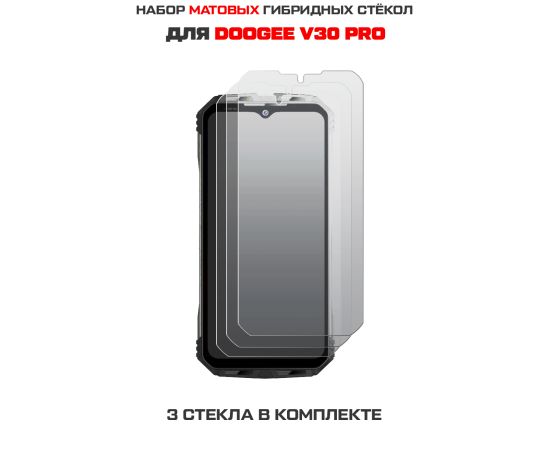 Комплект из 3-х защитных гибридных стекол МАТОВЫХ Krutoff для Doogee V30 Pro