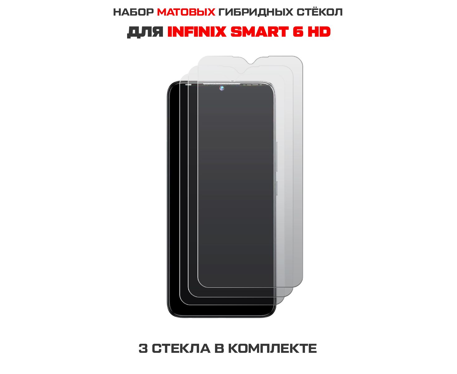 Комплект из 3-х защитных гибридных стекол МАТОВЫХ Krutoff для INFINIX Smart 6 HD