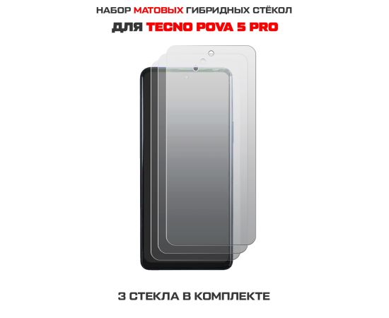 Комплект из 3-х защитных гибридных стекол МАТОВЫХ Krutoff для TECNO Pova 5 Pro