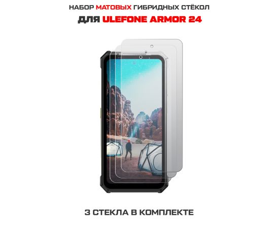 Комплект из 3-х защитных гибридных стекол МАТОВЫХ Krutoff для Ulefone Armor 24
