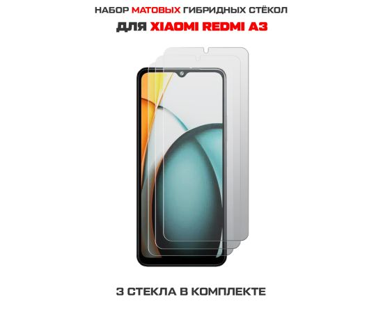 Комплект из 3-х защитных гибридных стекол МАТОВЫХ Krutoff для Xiaomi Redmi A3/A3x