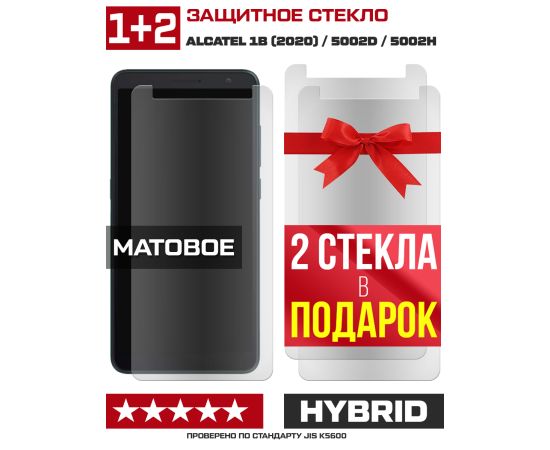 Комплект из 3-x защитных гибридных МАТОВЫХ стекол Krutoff для Alcatel 1B (2020) / 5002D/5002H