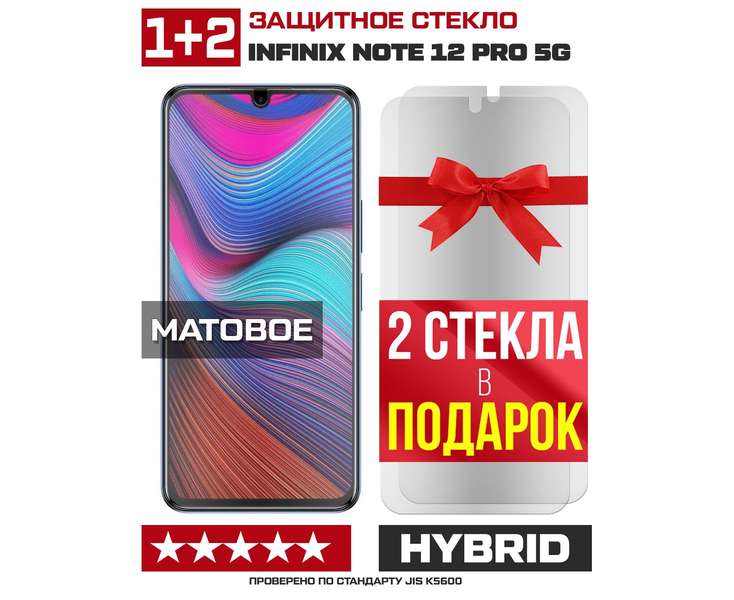 Комплект из 3-x защитных гибридных стекол МАТОВЫХ Krutoff для INFINIX Note 12 Pro 5G