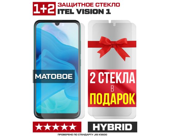 Комплект из 3-x защитных гибридных стекол МАТОВЫХ Krutoff для ITEL Vision 1