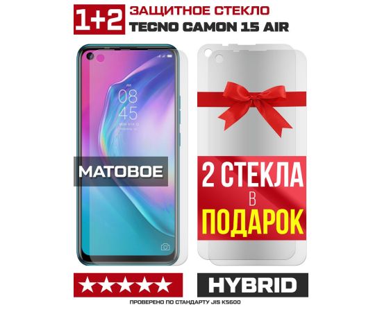 Комплект из 3-x защитных гибридных стекол МАТОВЫХ Krutoff для Tecno Camon 15 Air