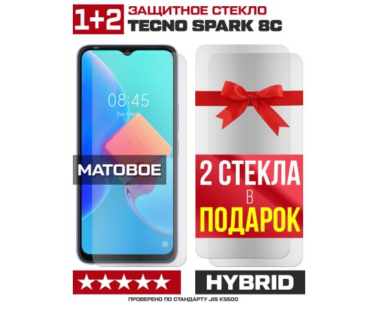 Комплект из 3-x защитных гибридных стекол МАТОВЫХ Krutoff для Tecno Spark 8C