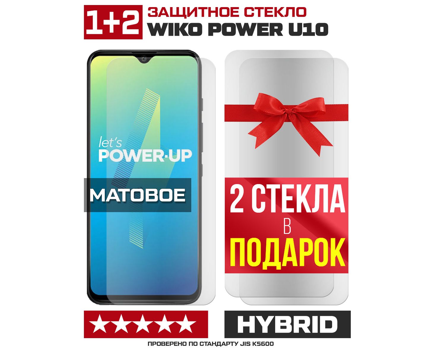 Комплект из 3-x защитных гибридных стекол МАТОВЫХ Krutoff для Wiko Power U10