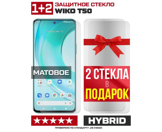Комплект из 3-x защитных гибридных стекол МАТОВЫХ Krutoff для Wiko T50