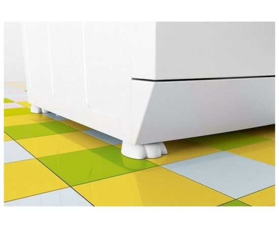 Конструкция с рёбрами жёсткости эффективно поглощает вибрацию, а также равномерно распределяет нагрузку на пол. Благодаря рельефной поверхности лапок ножки техники не скользят.