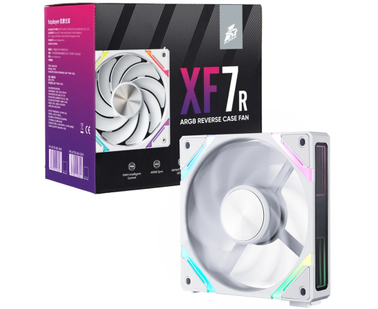 Комплект вентиляторов (3 шт.) 1STPLAYER XF7R White ( XF7R-WH-3IN1) / 120mm Reverse ARGB 3pin 5V PWM 4pin 12V 600-2000rpm 56.8cfm 33.12dBA