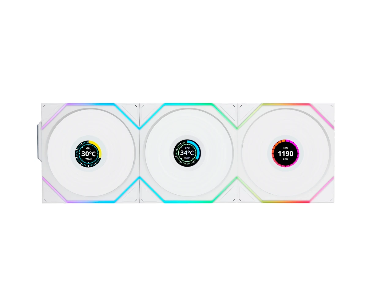 Комплект вентиляторов (3шт.) Lian Li UNI Fan TL Wireless LCD 120 Reverse Blade (G99.12RTLLCD1W3W.R0) / 12RTLLCD1W3W White /120x124x28мм