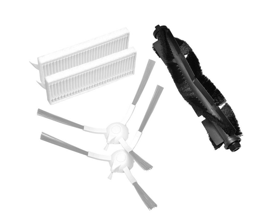В комплекте идут основная щётка (1 шт.), боковая щётка (2 шт.) и многоразовый фильтр HEPA (2 шт.).