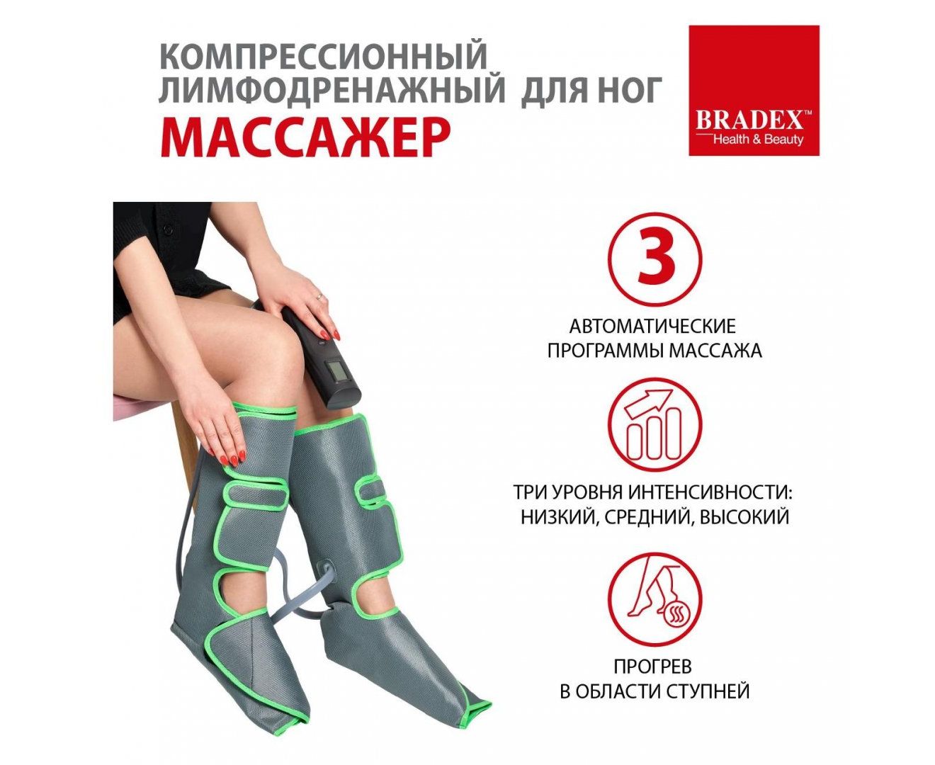 Компрессионный лимфодренажный массажер Bradex KZ 1166 серый