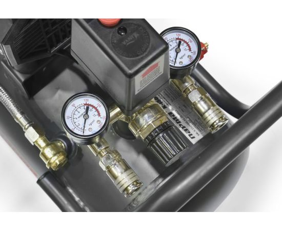 Пониженный уровень шума. Высокая энергоэффективность и производительность. Регулятор давления с предохранительным клапаном. Термозащита двигателя.