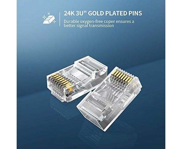 Коннектор Ugreen NW110 RJ-45 Connector разработан специально для патч-кабелей UTP / кабелей CAT.5e, Cat5.