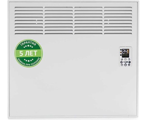 Обогреватель оснащен датчиком температуры, который находится внутри корпуса. Он позволяет не только мониторить температуру в помещении, но и выводит ее на экран прибора. Конвектор можно отрегулировать на поддержание температуры от 6 до 30°С.