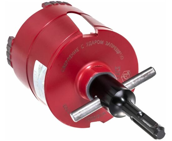 Коронка алмазная сегментная предназначена для сверления отверстий в бетоне, легко армированном бетоне и кирпиче ручной сверлильной машиной без подачи воды. Хвостовик - резьба М 16 внутренняя. Переходник SDS plus - М 16 и центровочное сверло в комплекте. Количество сегментов - 4 шт.