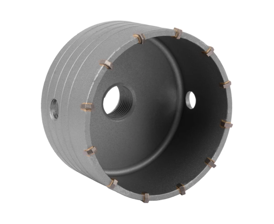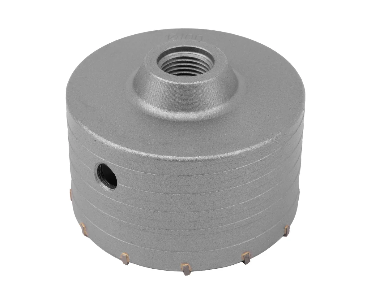 Буровая коронка Matrix 70389, M22 х 100 мм, рассчитана на сверление отверстий в бетоне, кирпиче, граните, природном и искусственном камне. Она устанавливается в качестве оснастки на ударные дрели или перфораторы, оснащенные хвостовиками SDS-Plus или SDS-Max. Коронка позволяет получить большие отверстия, поэтому пригодится при проведении бытовых ремонтных работ для монтажа розеток, выключателей и прокладки труб.