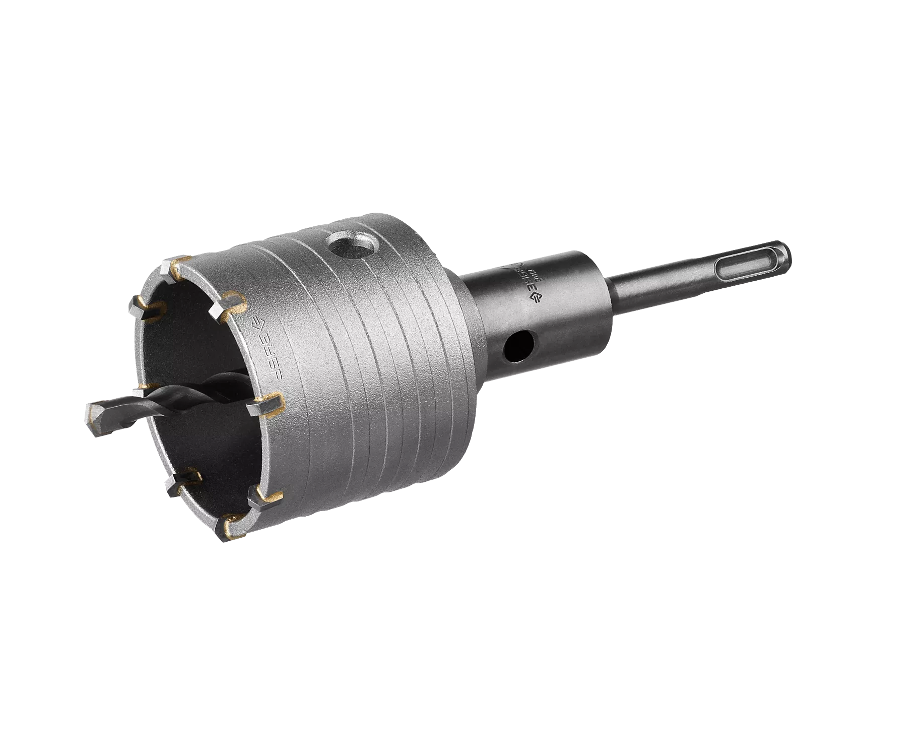 Специальная спиралевидная форма корпуса коронки из высокопрочной стали уменьшает трение о стенки отверстия, ускоряет отвод шлама и повышает срок службы инструмента