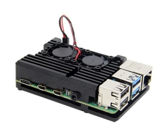 Совместимость с одноплатными микрокомпьютерами Raspberry PI 3B/3B+. Состоит из двух частей, крепящихся снизу и сверху на плате микрокомпьютера. Два предустановленных вентилятора