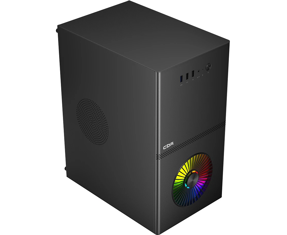 Корпус CBR V867 (PCC-MATX-V867-WPSU), без БП, mATX Minitower, 1*USB 3.0, 2*USB 2.0, HD Audio+Mic, Rainbow Fan, Black