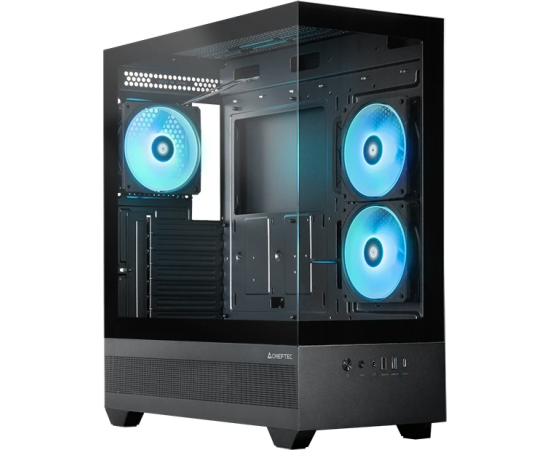 Корпус CHIEFTEC Vista GT-01B-OP, TG (aquarium), 3x120mm ARGB Fan, mini-ITX, mATX, ATX, черный