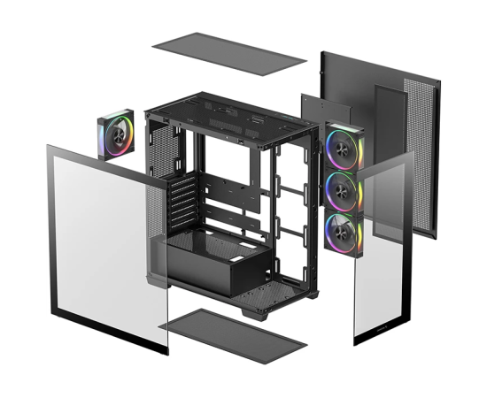 Корпус Deepcool CG580 4F V2 без БП, боковое окно (панорама), 4x120mm ARGB PWM вентилятора, черный, ATX
