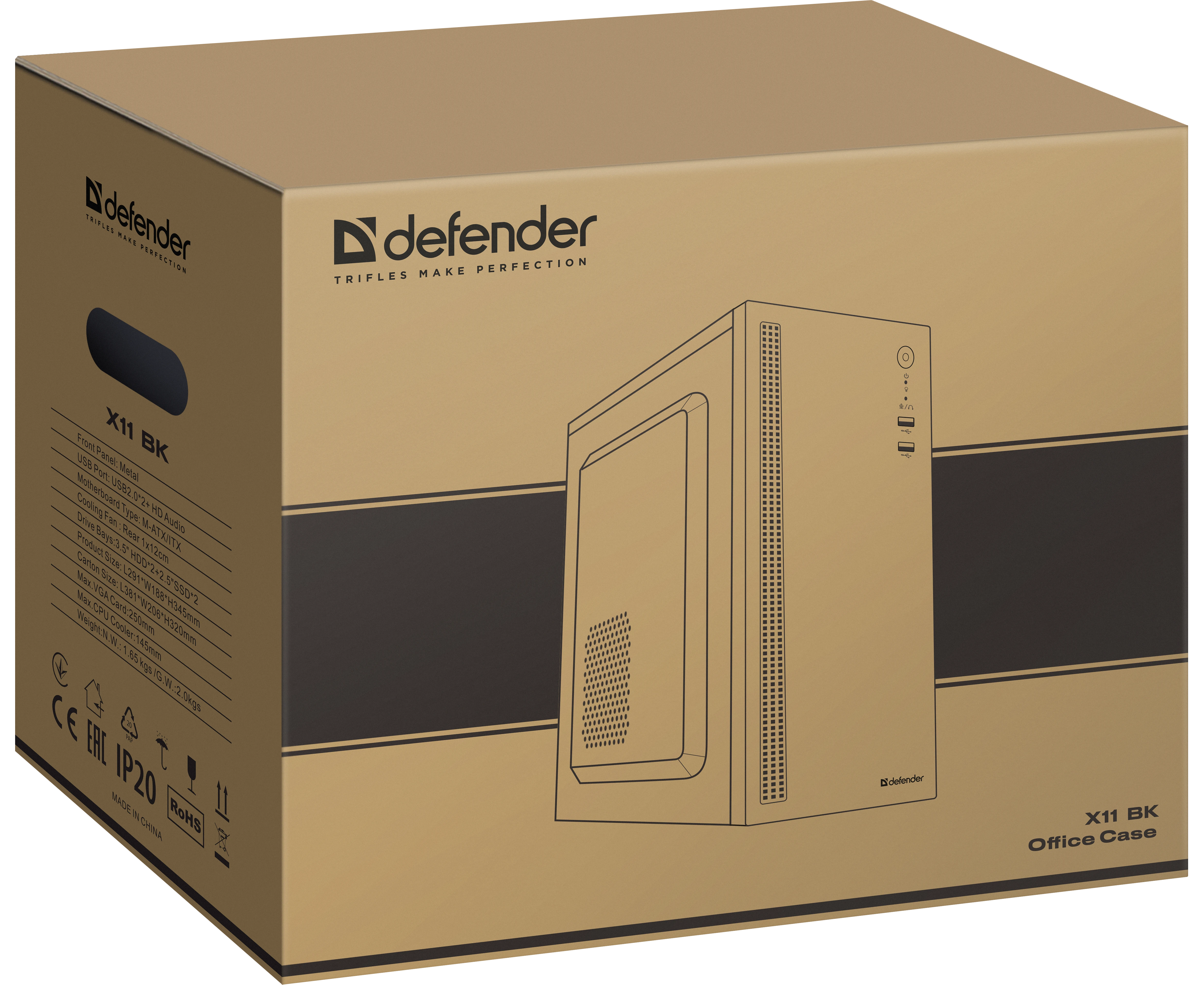 Корпус компьютерный DEFENDER X11 черный, mATX,USB1.1x2,HD Audio