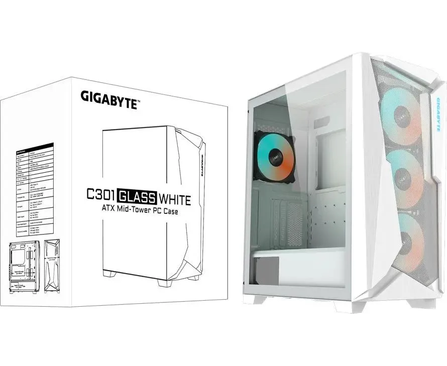 Корпус Gigabyte C301GW белый (28300-GC301W-2CKR) без БП ATX 4x120mm 4x140mm 2xUSB3.0 audio bott PSU