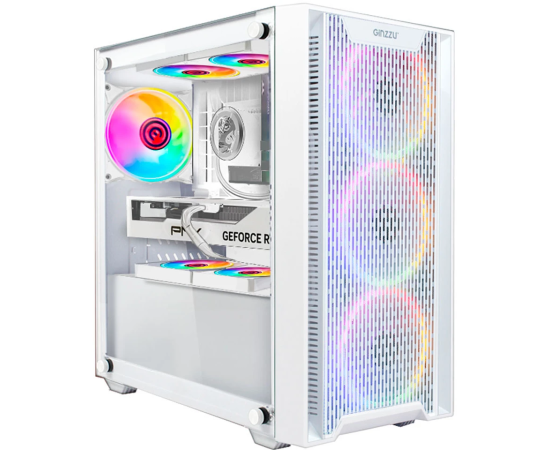 Корпус Ginzzu CL660 mATX Fan 4*12FRGB передняя панель решетка белый