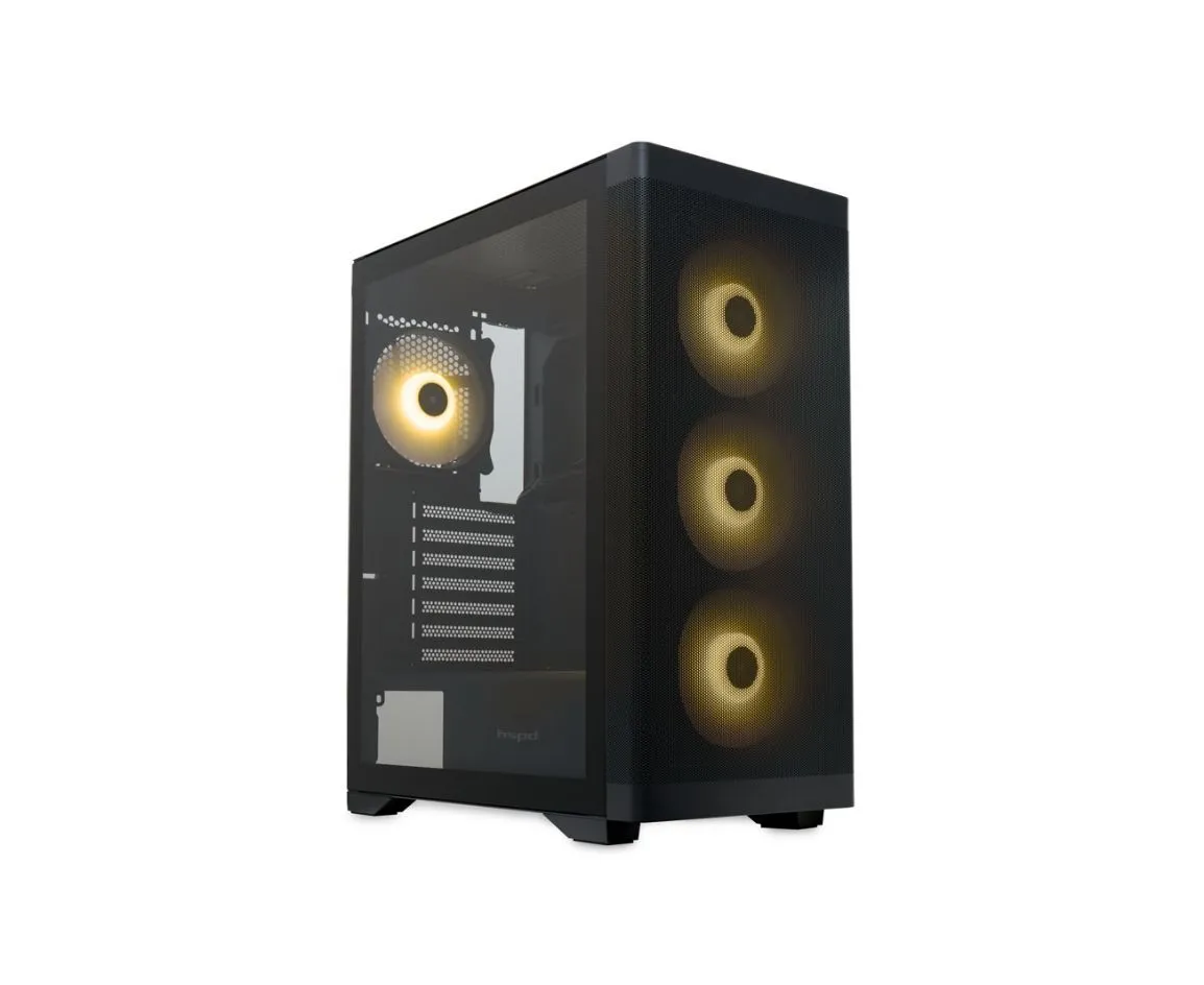 Корпус HSPD M520 (M520-TGBK-ARGB), Mesh Mid Tower, Black, slide TG, 0.45 SPCC, 4x120mm ARGB ATX