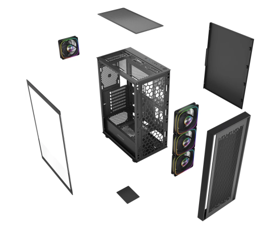 Корпус Powercase ByteFlow Black V2 (CBFB-A4-V2), Tempered Glass, 4x 120mm ARGB fans, чёрный, ATX