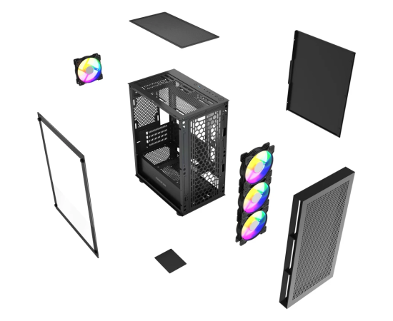 Корпус Powercase Mistral Micro EM17 (CMMEM17B-A4), Tempered Glass, 4x120mm ARGB PWM fan, чёрный, mATX
