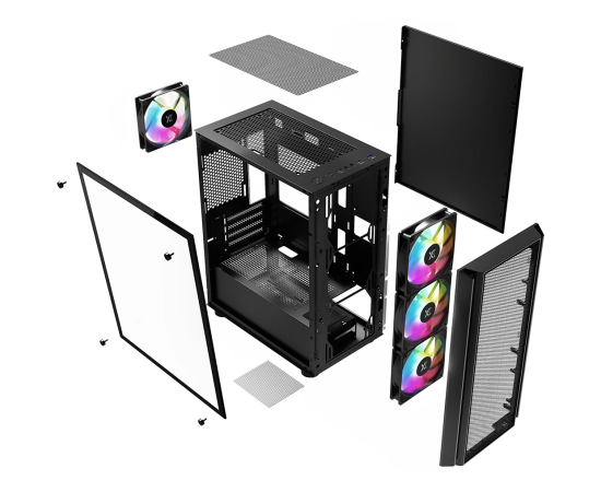 Корпус XASTRA A402M 4FRGB Black (A402M-4FC12F-BK) mATX/Mesh/full-size TG/4x120mm FRGB fans