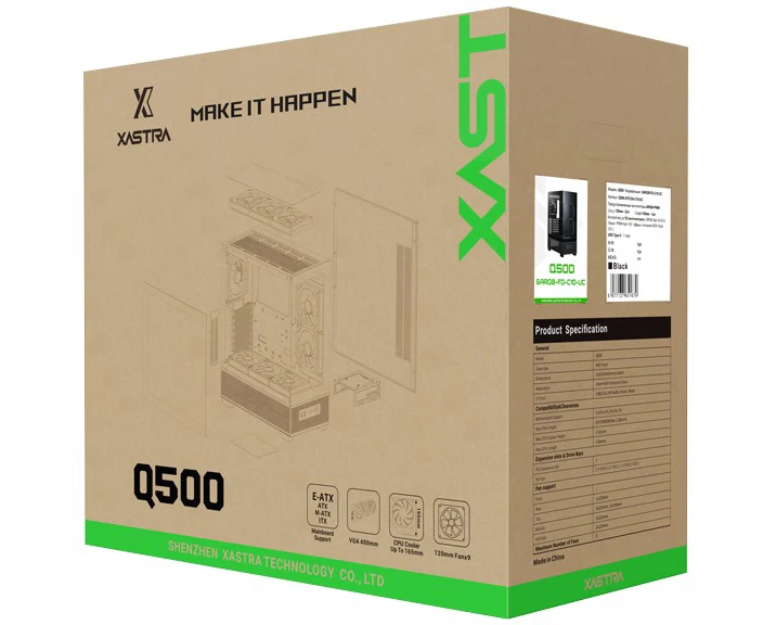 Корпус XASTRA Q500 6ARGB-FG-C10-UC Black (Q500-6FG12A-C10-UC) ATX/Aquarium/Screewless/ 6x120mm ARGB PWM FG fans/Argb+PWM HUB 10port/ Type-C